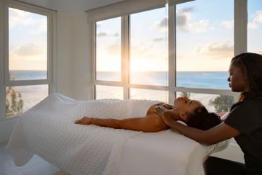 We also created a seaweed sculpture with the help of a local artist that leads you from the reception through to the treatment areas. Our concept was to create an elegant, sophisticated space that was neutral in colour exuding a relaxed and cleansing atmosphere whilst showcasing the views of the beautiful aqua water of the Barbados ocean.
