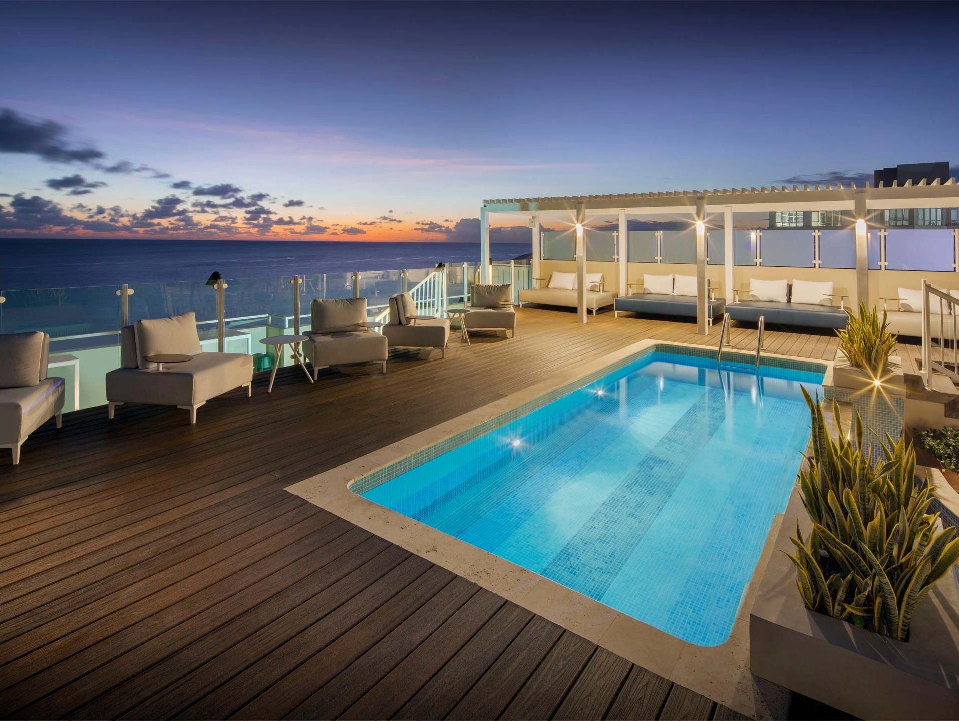 It is located on the roof of an 8-storey building. The space comprises of a small kitchen, a covered dining space with a bar, a lounge area with a small plunge pool and cabanas that overlook the beachfront. Its is appropriately themed using a nautical look and feel inspired by the 270 degree view of the ocean.