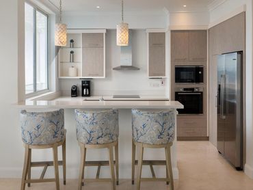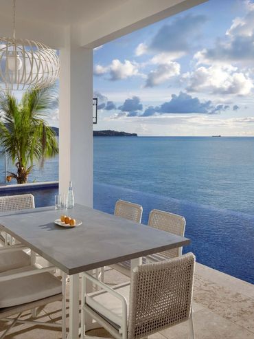 The Windjammer Landing hotel is a luxury beachside resort that recently underwent an exciting rebrand. Our team was responsible for the redesign of their restaurants and numerous villas, as well as the lobby, which serves as the heart of the resort. To maintain brand consistency, we incorporated the hotel's signature navy and white colors throughout the design.